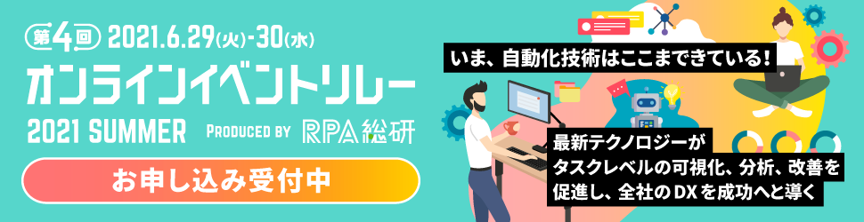 RPA総研主催のオンラインイベント「オンラインイベントリレー 2021 SUMMER」に登壇します。