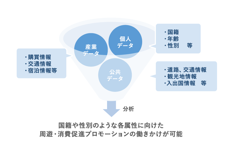 訪日観光客数の増大に向け、社会全体でこれらのデータを共有・活用し、
