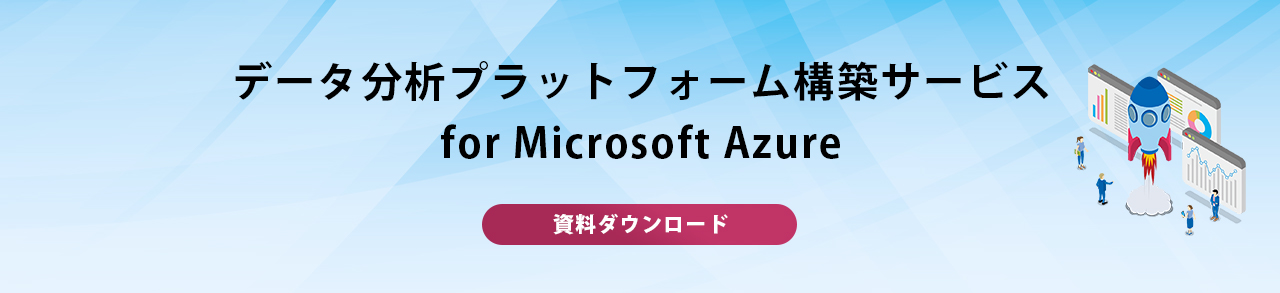 「データ分析プラットフォーム構築サービス for Microsoft Azure」は、Azureデータ分析関連サービスを活用し、お客様のデータを収集・分析し、BIツールにより可視化まで行える環境を構築します。