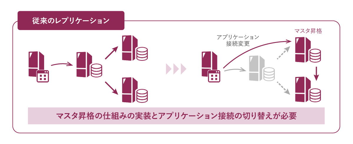 障害時にスレーブ昇格やアプリケーションの接続切り替えが必要