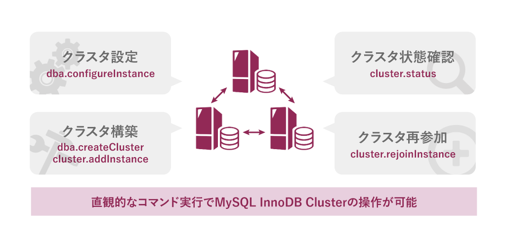 MySQL InnoDB Clusterは、使いなれたInnoDBストレージエンジンで高可用性と拡張性を兼ね備えた使いやすいMySQLの新しい高可用性フレームワークです。