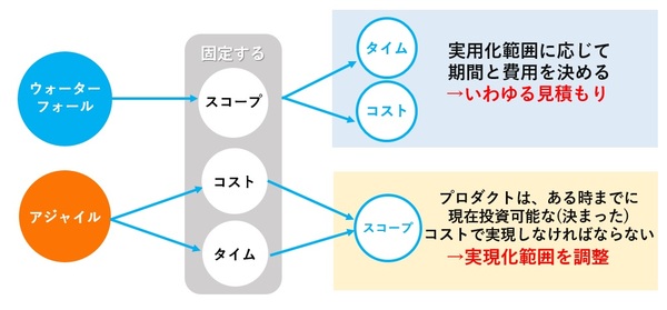 ある意味ではアジャイル開発は、「実現範囲(Scope)」を素早く・柔軟に調整するための開発モデルなのです。